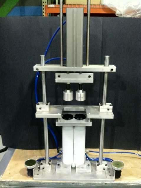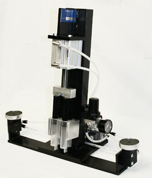Dedoes pneumatic plunger inserter for two dual cartridges simultaneously. Plunger depth control is fully adjustable. Dedoes plunger inserter can be custom made to fit any single or dual cartridge. Contact our sales department now for a quote!